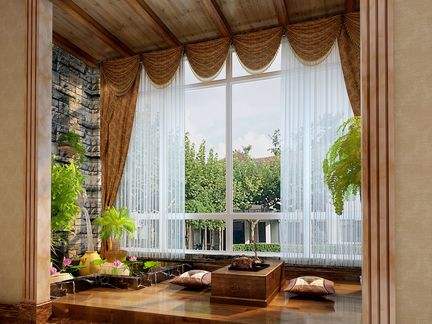 如果臥室面積過小,而且采光嚴重不足的話,可以把陽臺空間充分利用起來,把臥室和陽臺打通,使其與居室連為一體。再設計一面大大的落地窗,配上飄逸的窗簾,既能擴大臥室面積,又能讓整體空間看起來更加寬敞明亮。