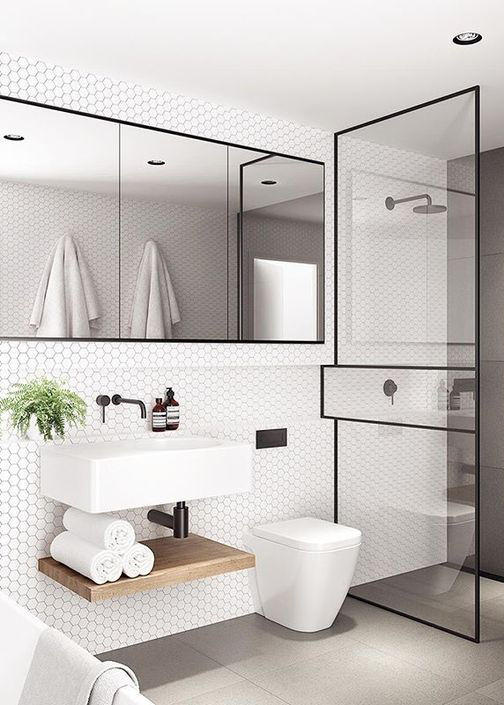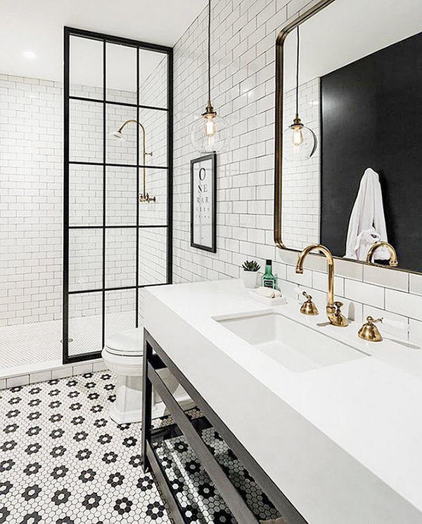 ? ? ??當黑色和黃銅配件席卷衛生間,黑框玻璃門的加入更是將整個空間的顏值拔高一大截。