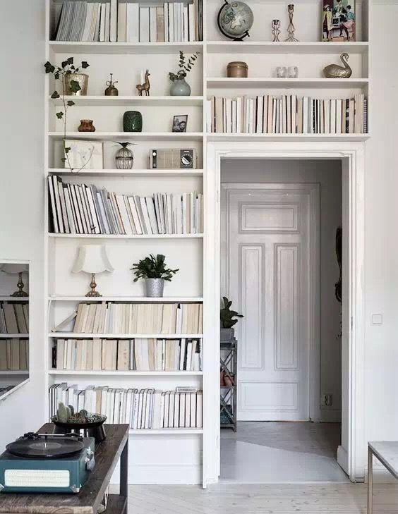 ▲利用門框周圍做內置書柜,進門一回頭就是個大驚喜。