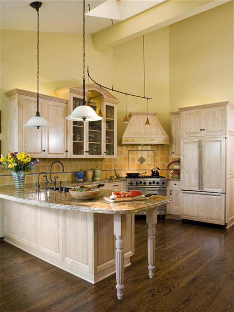 廚房燈光設計同樣重要,廚房的燈光由兩部分組成,一個是對廚房整體的照明,另一個是對洗滌、備餐、操作說明。另外,廚房的燈光最好是選擇白色,不然影響顏色判斷,在這里需要注意的是,不能使用射燈。