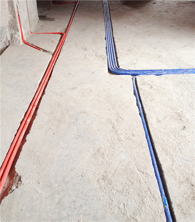 澳華整裝電路隱蔽工程強弱電按顏色進行分管,紅色PVC管走強電線,藍色PVC管走弱電線,分色更便于區別。按國家標準,一根PVC管內不得超過8根線,澳華整裝電路隱蔽工程中每根PVC線管內不超過5根線,遠高于國家標準。