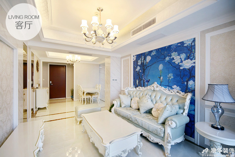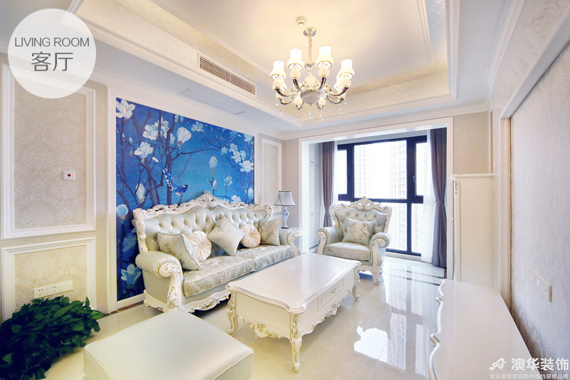 乍一看沙發(fā)背景,恍如走進(jìn)愛(ài)麗絲夢(mèng)游仙境,又像是誤入了《奇幻森林》,湖水藍(lán)與純凈白勾勒的畫(huà)面,神秘而輕盈。