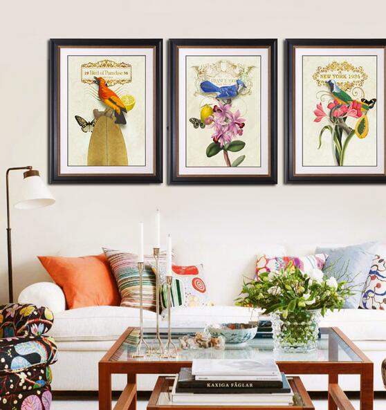 ??繪著鳥兒振翅飛舞的畫作讓單色的墻壁一下子有了動態的視覺效果,淺色的沙發上堆滿色彩斑斕的靠墊,為居室營造出一番熱鬧的氛圍,而茶幾上彩色的茶杯或綠植也讓客廳充滿生機。
