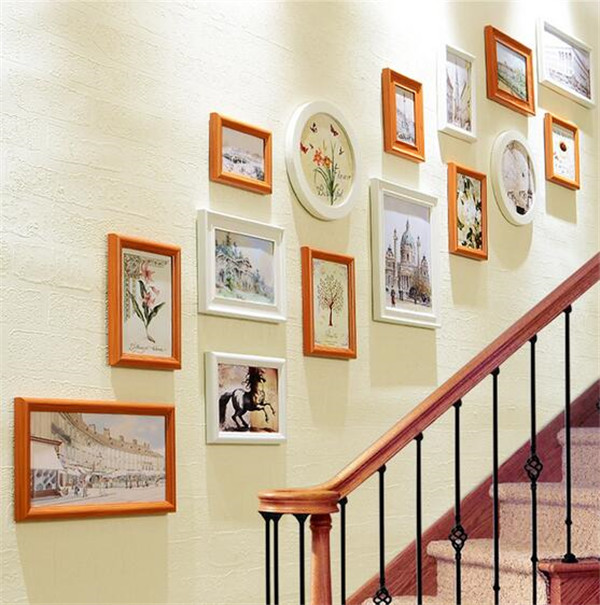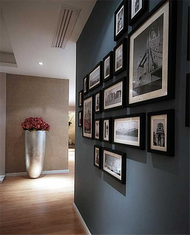 2、裝照片墻的墻面不管是一長條墻面還是四四方方的墻面,一定要比較空曠。比如沙發后面,走廊,樓梯等。