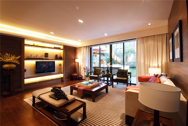 選用一些樸實,天然的材料,能讓整個家有一種輕松自然的感覺,電視背景墻作為體現客廳風格的重要元素之一,選用具有天然紋理的石材,可達到非常理想的效果。