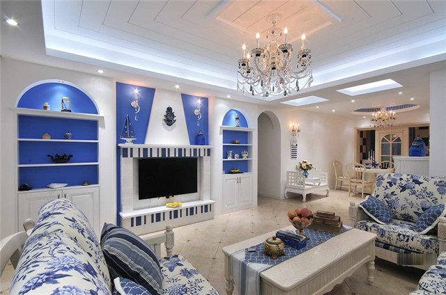材質:家具盡量采用低彩度、線條簡單且修邊渾圓的木質家具。地面則多鋪赤陶或石板。馬賽克鑲嵌、拼貼在地中 海風格中算較為華麗的裝飾。主要利用小石子、瓷磚、貝類、玻璃片、玻璃珠等素材,切割后再進行創意組合。在室內,窗簾、桌巾、沙發套、燈罩等均以低彩度色調和棉織品為主。素雅的 小細花條紋格子圖案是主要風格。獨特的鍛打鐵藝家具,也是地中海風格獨特的美學產物。同時,地中海風格的家具還要注意綠化,爬藤類植物是常見的居家植物,小巧可愛的綠色盆栽也常 看見。