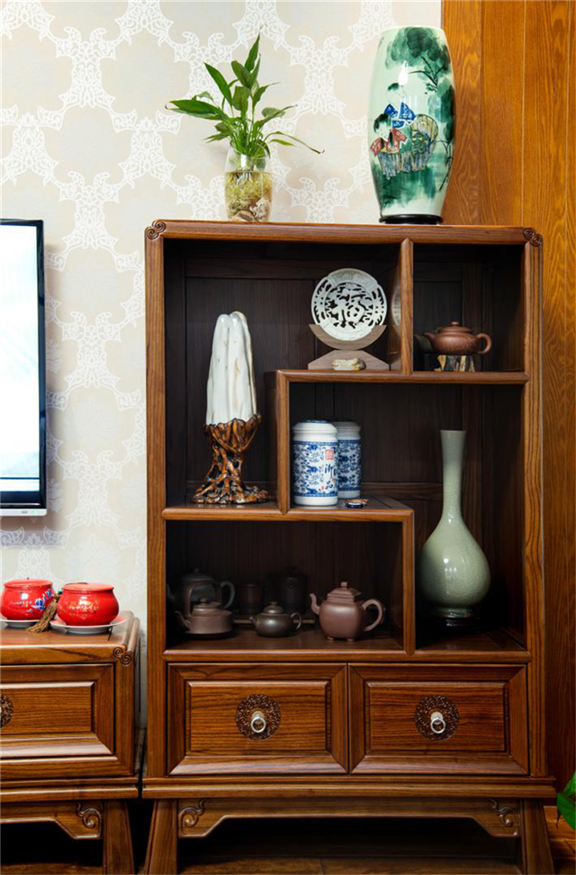 博古柜:喜歡中式風格的人都對古玩有著特殊的情感,無論是陶瓷、花瓶,還是茶具,一個博古柜就是他們情感最好的歸宿。