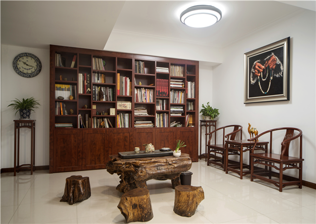 書房:傳統書房少不了書柜、書案以及文房四寶。這些古典元素運用到新中式風格里,能夠營造獨有的東方氣息。