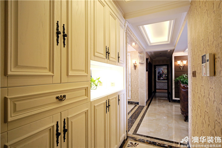 在家居設計風格上,黃女士并未有過多糾結。四室兩廳的戶型,有充足的空間就要裝得其所,裝出家人滿意、家居便利的效果。簡單征詢家人的意愿后,黃女士果斷采納了設計師汪海的建議:以歐式硬裝為主,美式軟裝為輔的多元設計方案。