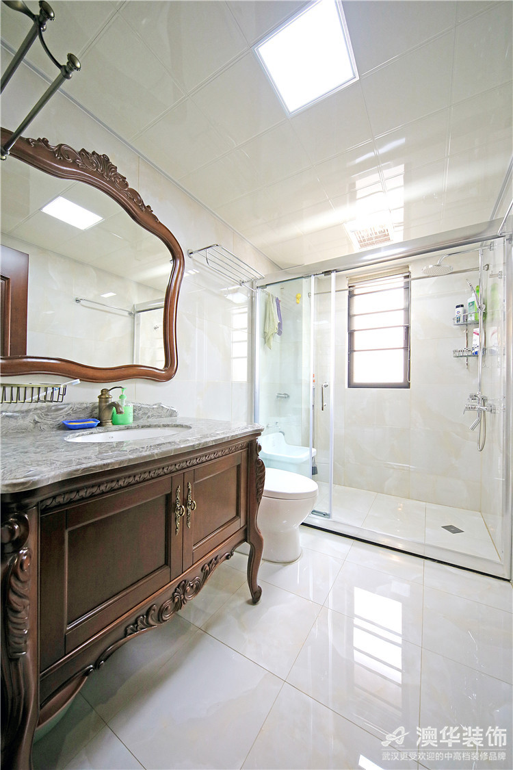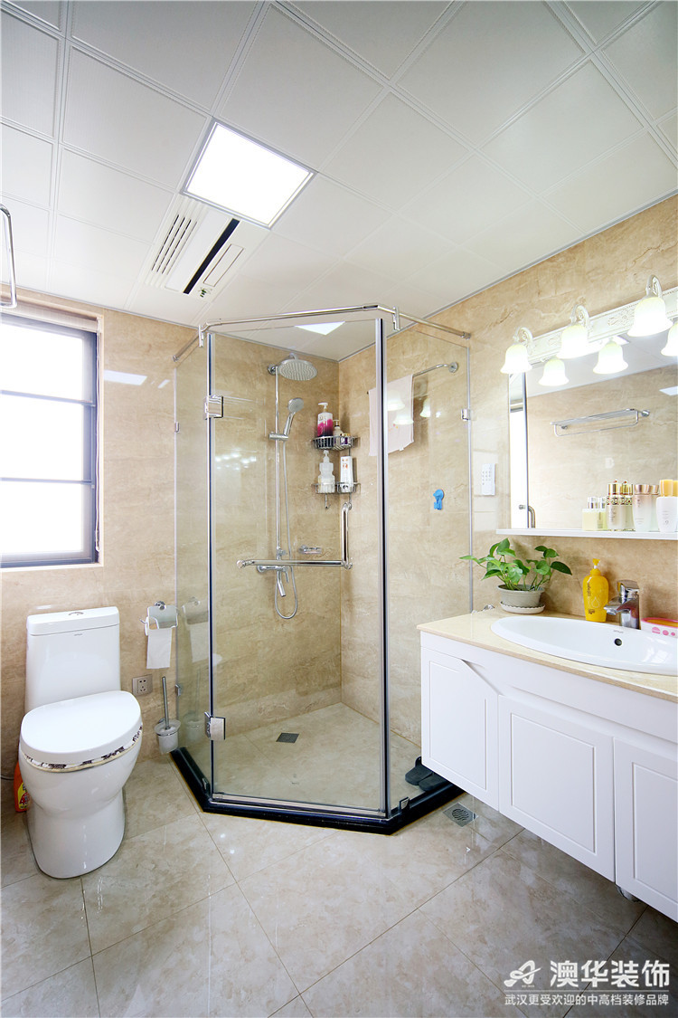 衛生間水漬、濕氣是最讓人頭疼的問題,武漢天氣變化太快,衛生間通風排水跟不上,家里總是濕漉漉的。所以,汪工在主次衛生間做了干濕分區,設計很人性化、擋水條和方形地漏也非常實用。