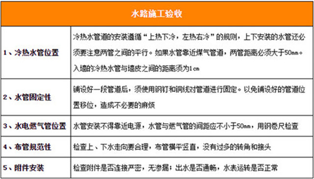 水路改造施工注意的事項(xiàng)較多,驗(yàn)收的時(shí)候可以對照施工注意事項(xiàng)來逐條看家中的水路是否符合規(guī)范。