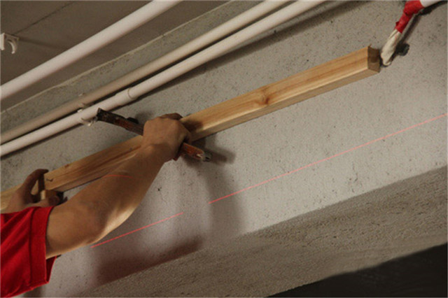 吊頂施工第一步就是定基準線,通常是用墨斗根據設計圖紙進行彈線。為了確保彈性的水平,往往還需用到水平尺或者激光水平儀來測量。因為只要保證了基準線的水平,才能夠確保安裝的吊頂不會發生傾斜或存在高低落差的情況。