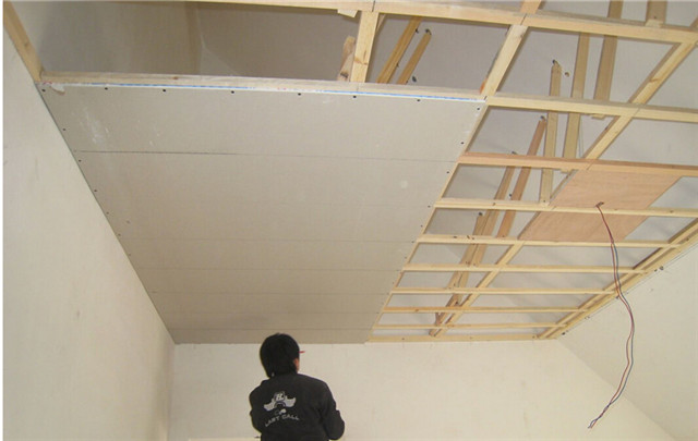 石膏板吊頂通常是由龍骨框架加石膏板做成的,其中石膏板起到面板的作用,龍骨起到支架作用,龍骨又主要有木龍骨和輕鋼龍骨兩種。一般首先安裝固定龍骨,然后再安裝石膏板,安裝完成之后,再在上面刷上涂料即可。