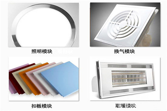 集成吊頂將廚房、衛生間浴霸的照明、換氣、取暖分拆成獨立的功能模塊,然后因地制宜,自由組合安裝。不僅安裝位置可以根據實際環境選擇,而且電器功能也可以根據消費者需求進行自由組合搭配,充分體現了選擇和安裝的人性化。
