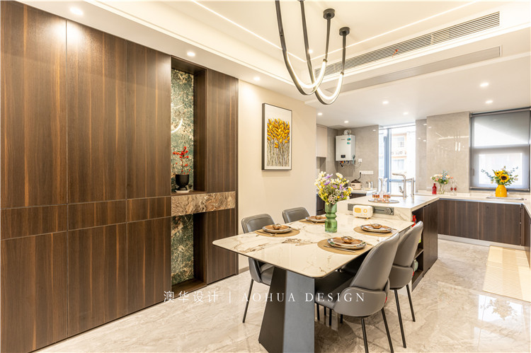 在設計廚房門時,可直接做平移口袋門,平時直接折疊進餐廚墻內(nèi),一點也不占空間,秒變開放式廚房!
