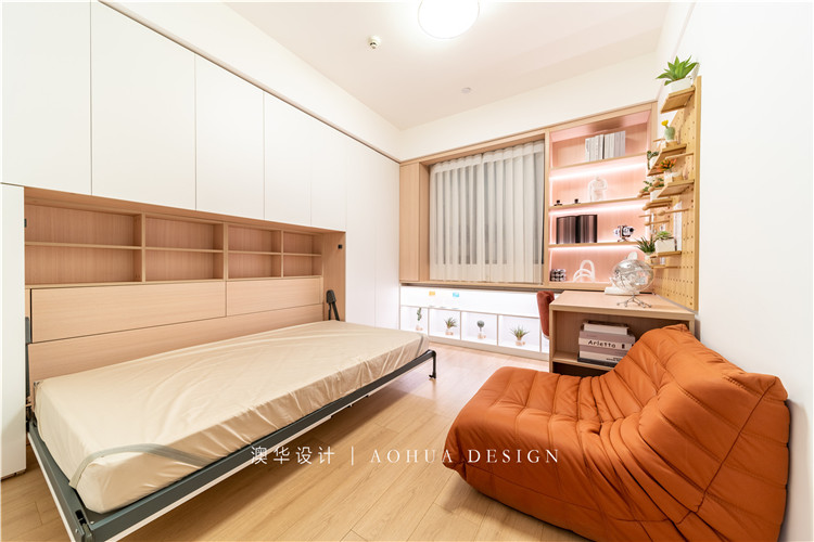 隱形床是把床鋪用壁掛的方式藏到定制柜中,堪稱小戶型“神器”,具有睡眠、收納、休閑、辦公等多種不同功能,它可以和衣柜、書桌結合設計成一體式,視覺效果更強。