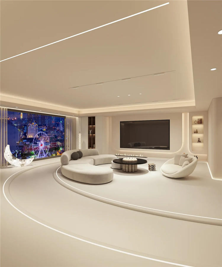 隱形燈帶主要用于輔助無主燈設計,通過弱化燈具自身的存在感,空間整體性更強。