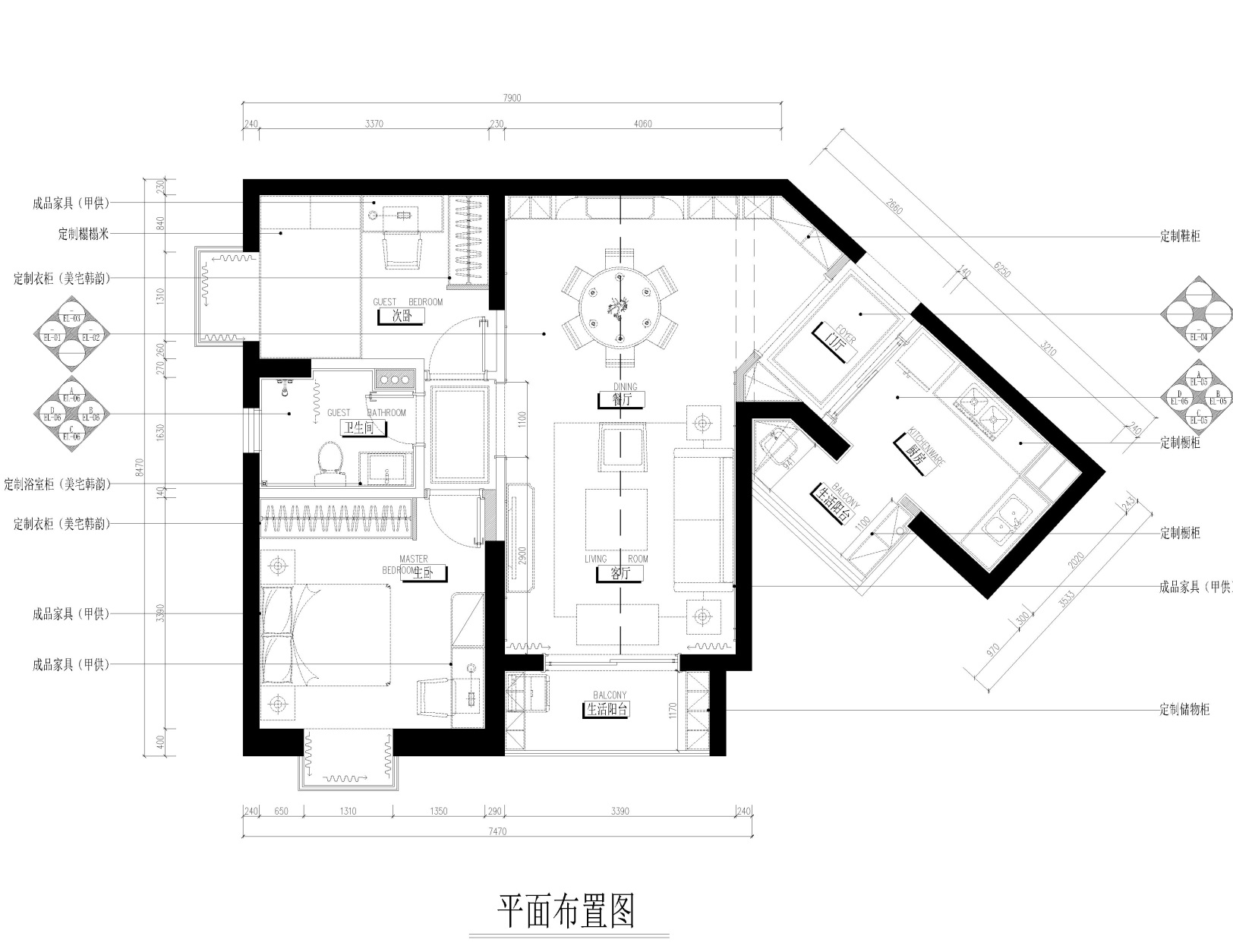 世紀(jì)江尚這套89㎡的房屋戶型存在著較大缺陷,原本房屋建筑面積就不算大,還存在著一個(gè)突兀的拐角空間,因此在設(shè)計(jì)時(shí)需要對(duì)空間的功能區(qū)域進(jìn)行合理的劃分,同時(shí)對(duì)拐角區(qū)域的空間進(jìn)行合理的利用,以避免空間出現(xiàn)違和感。而由于房屋整體面積較小,因此家具的選擇上則多考慮小體量家具,避免造成視覺違和感。