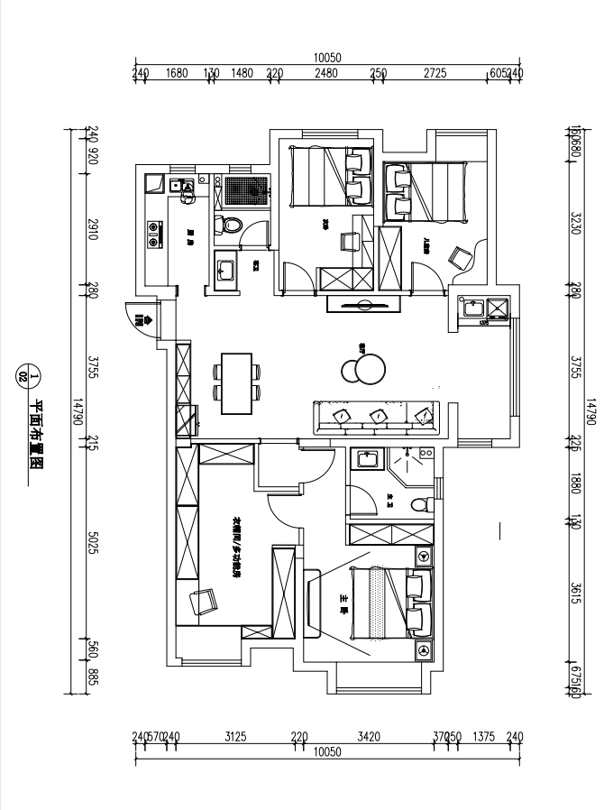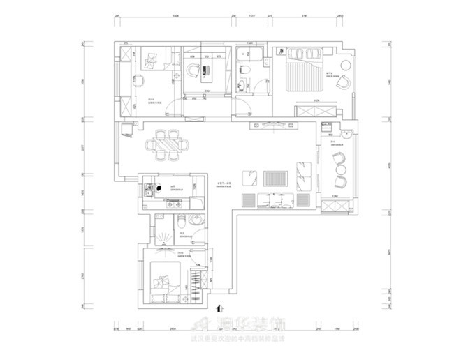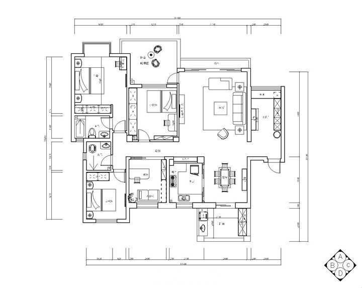 廣電蘭亭瓏府的這套175㎡的四居室房屋其實戶型相對比較合理,并沒有出現各種難以利用設計的角落,因此空間的設計重點將在如何滿足多子家庭的起居使用需求與如何呈現新中式風的大氣美。設計師通過利用一些帶有中式風情的元素進行空間裝飾點綴,強調中式所特有的韻味美,同時利用多個嵌入式設計來提升空間的利用率,避免房屋看起來過于的壓抑、局促。