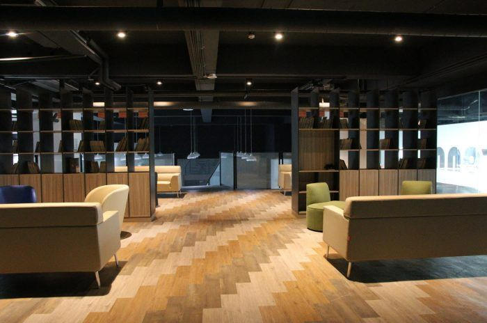 小貼士:斜拼很適合在不規則的空間鋪設,因為在不規則的室內中無論使用直向或橫向鋪設,視覺上都會產生”好像沒對齊的感覺”;反而用斜拼的方式就不會有這種狀況發生。