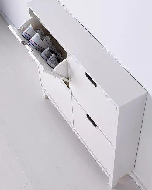 家里平底鞋、低跟鞋居多的話,可以參考這種鞋柜。不需要太多空間,收納能力卻很強。而且,可以看到,它所需要占用的空間是很小的,在比較窄的玄關(guān)空間中,一點都不會影響日常的行走通過。