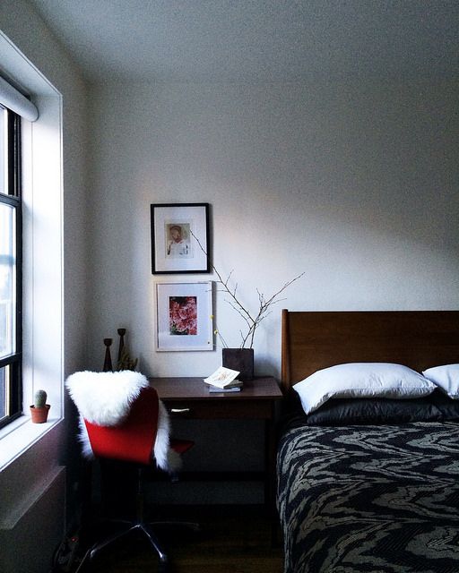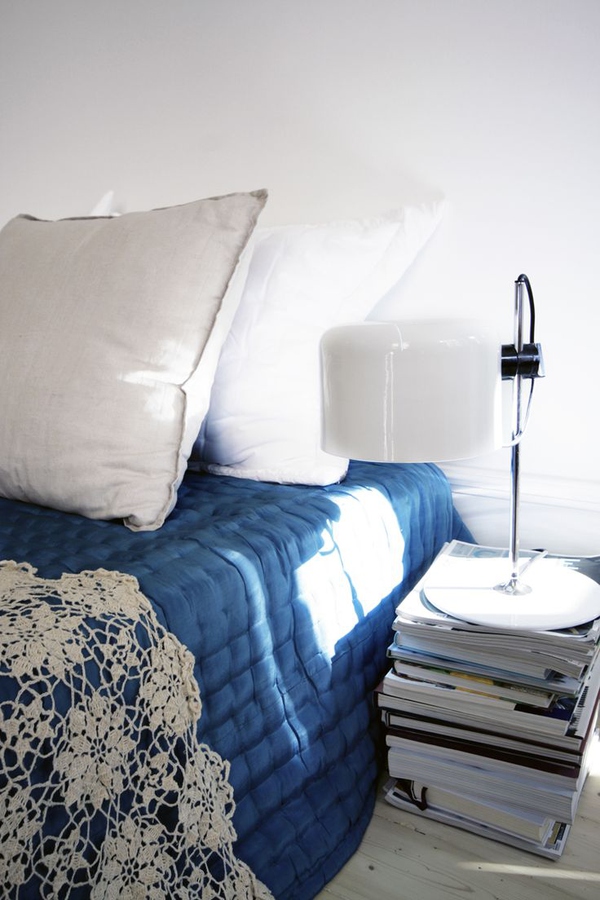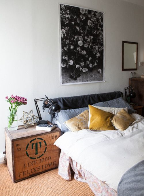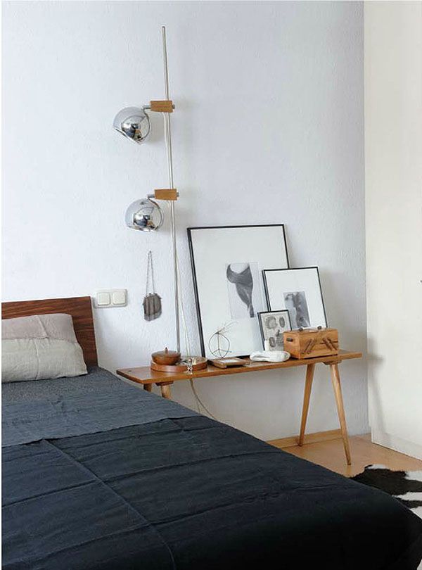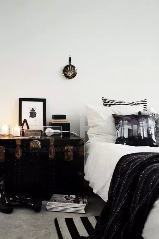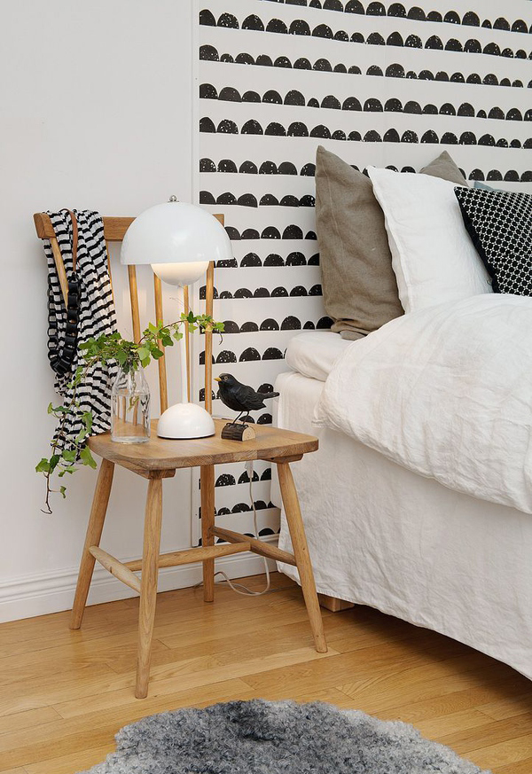 當你不需要在床頭放置太多東西時,可以考慮凳子這種簡單的平面。
