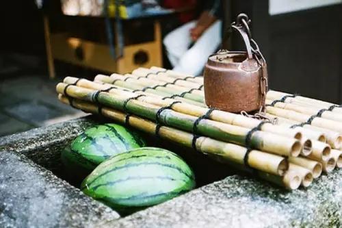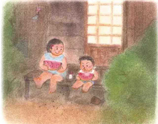 洗完澡后一家人坐在竹床上乘涼,吃著浸過井水的西瓜,涼風陣陣,一點不覺得熱。