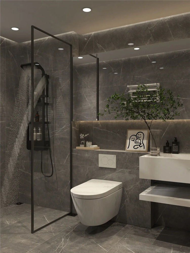 ③大面積的衛生間可以隨意發揮,深色系、淺色系均可,但需考慮采光通透性。
