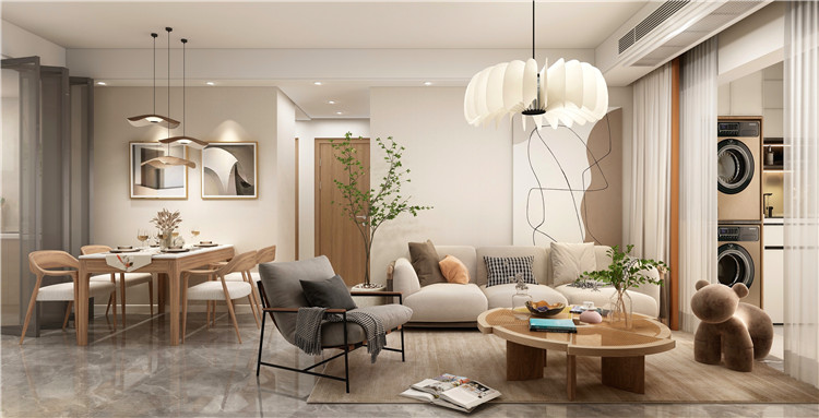 餐廳和客廳開(kāi)放式的設(shè)計(jì),特色吊燈搭配木頭餐椅別具一番風(fēng)味。