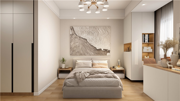 既滿足了大床鋪的要求,又滿足了儲(chǔ)物的需要,柜子側(cè)面也得到了充分的利用。