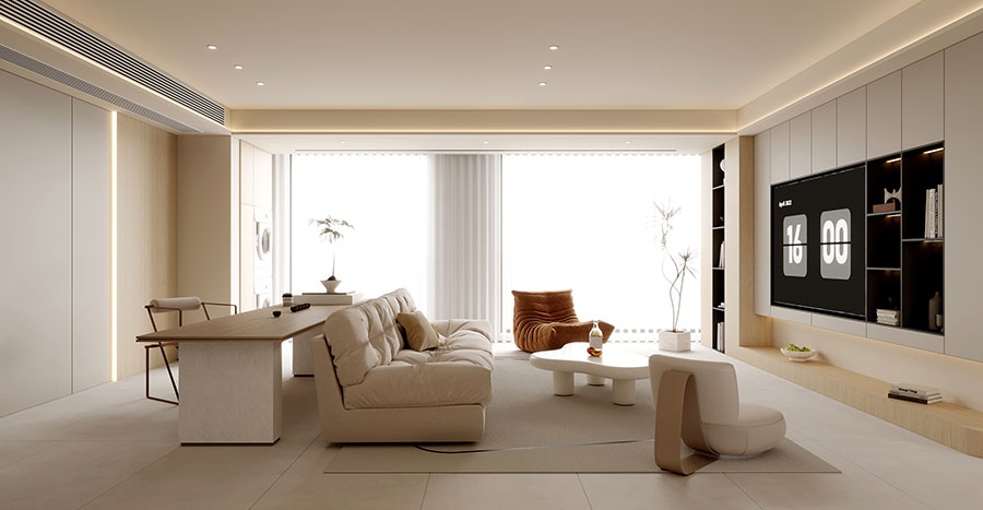 餐廚一體設計+客廳與書房結合