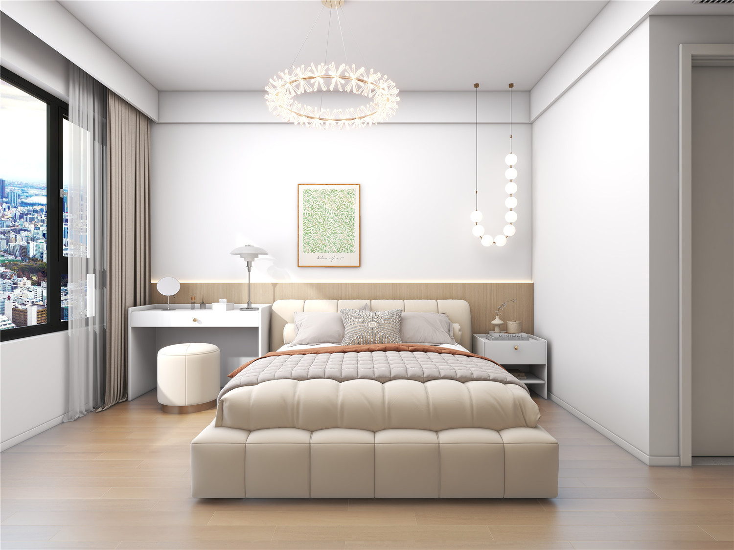 4 臥室采用L型衣柜設計,豐富了空間層次。儲物面積也擴展不少。有衣帽間做隔斷,主衛(wèi)門也不對直接對著床,整個睡眠區(qū)都保持舒適愜意。