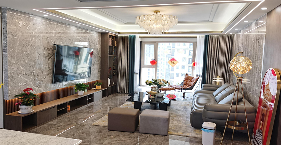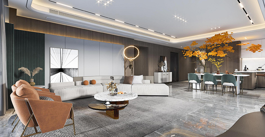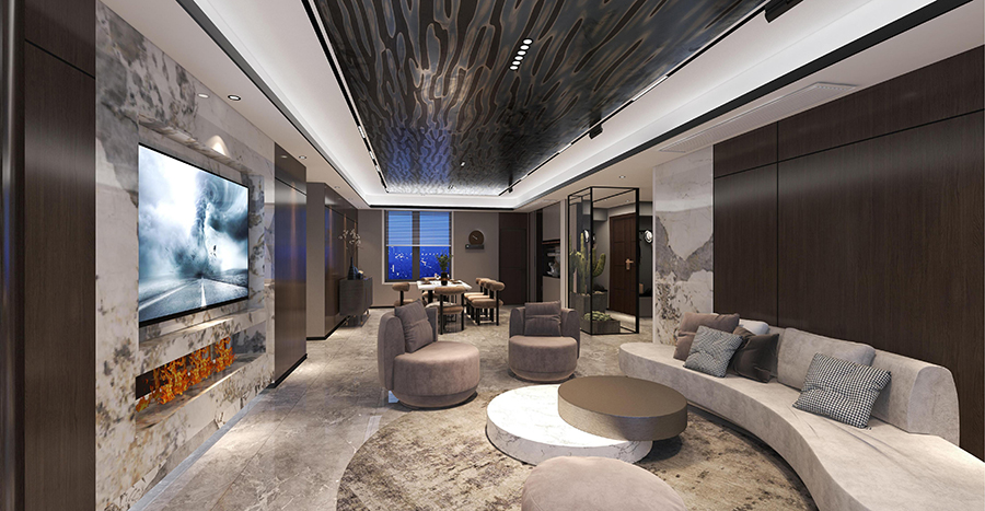 案例簡介:本案例的業主是企業高管,有著自己的品味與審美,因此希望在家裝設計的過程中能夠展示出自己的品味。而設計師在與業主進行深入交流之后,為業主挑選了品質感較強的現代輕奢風進行整體裝飾,借助簡約的色彩與裝飾賦予空間個性與格調感。