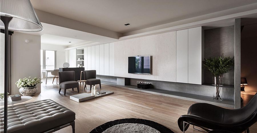不同深度的灰色賦予了就餐空間簡約感與結構刊,搭配上大理石餐桌,給人優雅高級格調感。