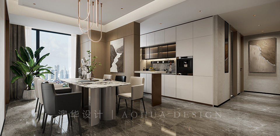 打通了原有的次衛(wèi)空間,做了吧臺(tái)和餐邊柜的設(shè)計(jì),讓餐廳更有家的氛圍,使用的功能更加全面,整體空調(diào)大氣時(shí)尚。